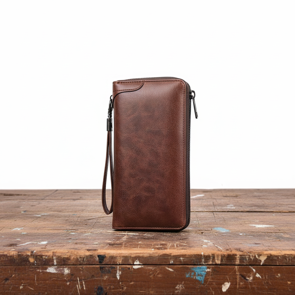 Projetei a Carteira Colin RFID com muito cuidado porque, para mim, uma carteira deve ser não só prática, mas também confiável e bonita. O couro de alta qualidade é agradável ao toque e desenvolve um caráter único com o tempo. O zíper mantém tudo seguro, e o interior oferece muito espaço para cartões, notas e pequenos objetos do dia a dia.